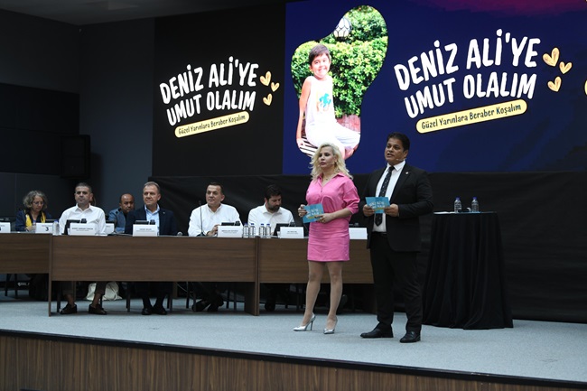 Mersin Büyükşehir Belediyesi Kongre ve Sergi Sarayı’nda düzenlenen canlı bağış programında Yenişehir Belediye Başkanı Abdullah Özyiğit’in yanı sıra Mersin Büyükşehir Belediye Başkanı Vahap Seçer, ilçe belediye başkanları, sivil toplum kuruluşlarının başkan ve temsilcileri ile gazeteciler yer aldı. Moderatörlüğünü Mersin Gazeteciler Cemiyeti Başkanı Kaya Tepe ve televizyon programcısı Arzu Özer’in yaptığı canlı bağış yayınına CHP Grup Başkanvekili Ali Mahir Başarı ile CHP Mersin Milletvekili Talat Dinçer de bağlanarak, Deniz Ali için bağış çağrış yaptı. Yaklaşık 3,5 saat süren programda belediye başkanları yardımseverleri tek tek arayarak, Deniz Ali için destek talebinde bulundu.