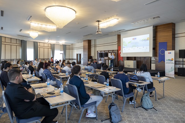 Mersin Büyükşehir Belediyesi Çevre Koruma ve Kontrol Dairesi Başkanı Dr. Bülent Halisdemir, Mersin Büyükşehir olarak çevre ve iklim üzerine birçok çalışma yaptıklarından söz ederek, Litvanya’nın Klaipeda şehri ile ortak yürüttükleri ve Klaipeda Üniversitesi, Ortadoğu Teknik Üniversitesi (ODTÜ) Deniz Bilimleri Enstitüsü ile Mersin Ticaret ve Sanayi Odası’nın da paydaş olduğu Avrupa Birliği (AB) projesi olan ‘Yeşil Bir Gelecek İçin Liman Şehirleri Ortaklığı’ projesini anlattı. Dr. Halisdemir, “Biz iklim değişikliğine dirençli bir kent yaratmak istiyoruz. Maalesef iklim değişiyor. Bu iklim değişimini durdurma şansımız şu an mümkün değil. Ama bu iklim değişikliğinin vereceği olumsuzlukları minimize etmek bizim elimizde. Biz Mersin Büyükşehir Belediyesi olarak üzerimize düşen bütün görevleri layıkıyla yapmaya çalışıyoruz. Başkanımız bu konuda gerçekten çok duyarlı, çok vizyon sahibi ve bizlere de öncü oluyor” dedi.
