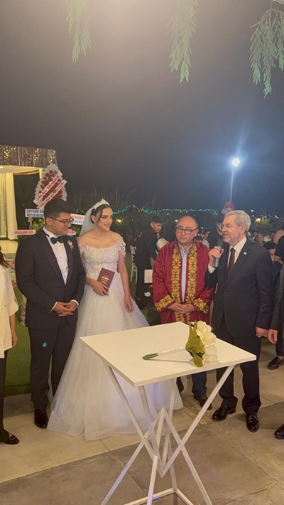 Ünüvar ve Ekici ailelerinin kıymetli evlatları Ceyhun ve Ece’nin nikâhlarını Erdemli Belediye Başkanı Mustafa Kara kıydı. Nikâh merasiminde Ankara Üniversitesi Rektörü Prof. Dr. Necdet Ünüvar, Mersin Üniversitesi Rektörü Prof. Dr. Erol Yaşar, MHP Mersin Milletvekili ve MYK Üyesi Levent Uysal, AK Parti Mersin Milletvekili Havva Sibel Söylemez, MHP Mersin İl Başkanı Ömer Gürsoy, AK Parti Erdemli İlçe Başkanı Ali Mustafa Poş ve AK Parti Toroslar İlçe Başkanı Ferdi Çokkeser şahitlik etti.